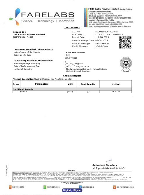 Protein Content: 87.0g/100g.