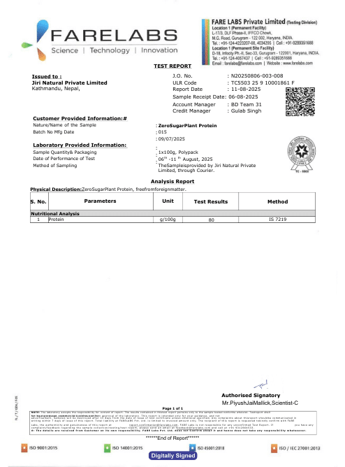 Protein Content: 80.0g/100g.