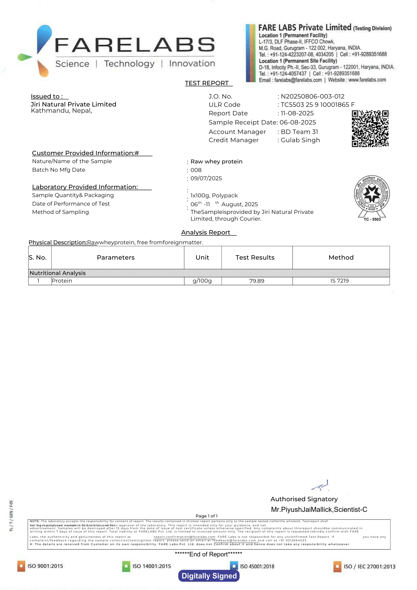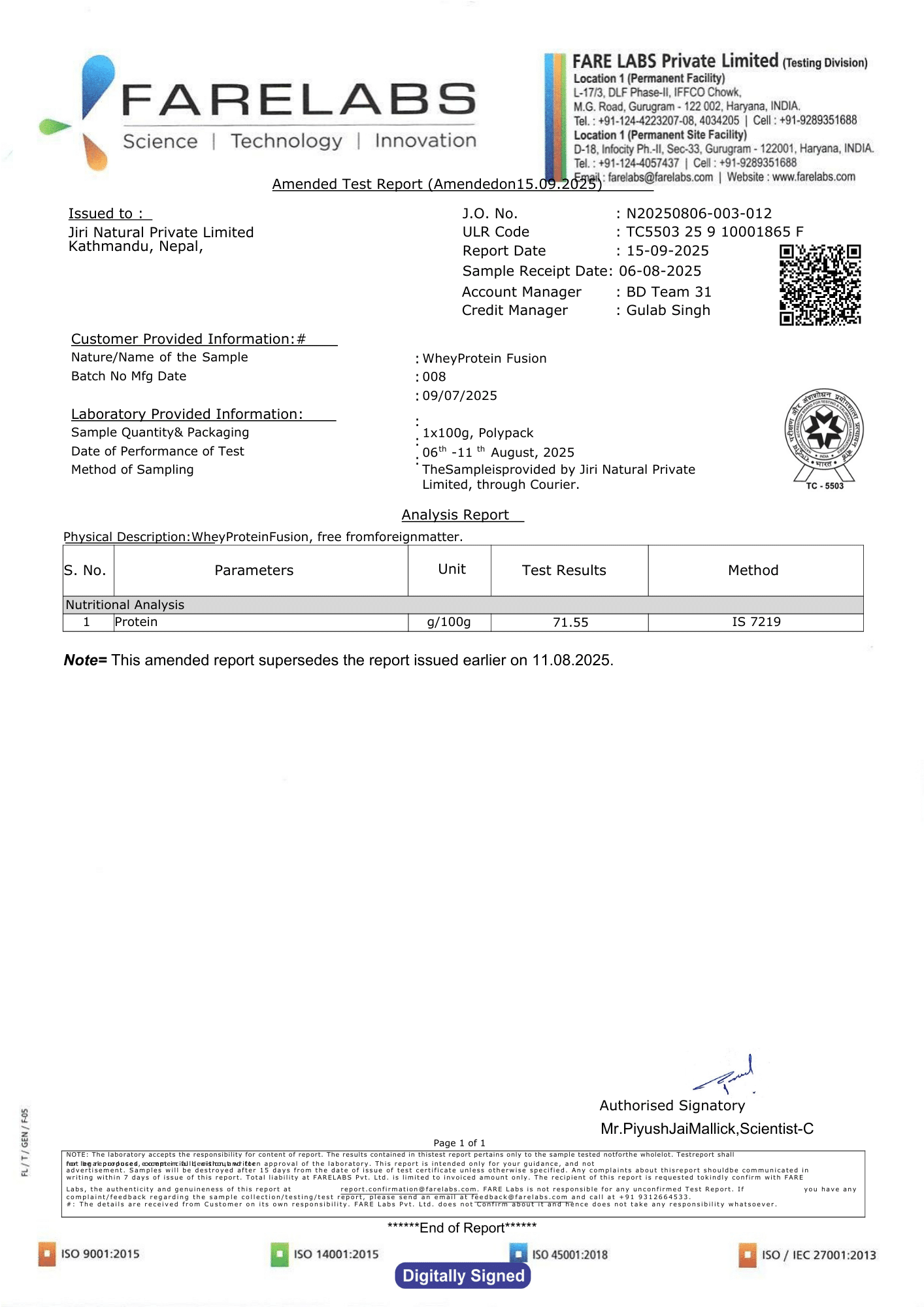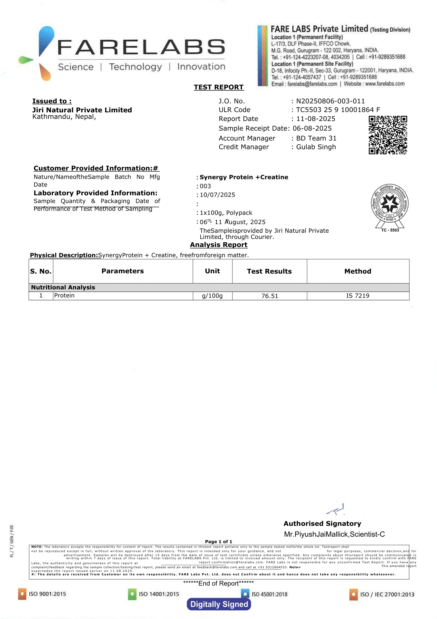 Lab Report from Farelabs India