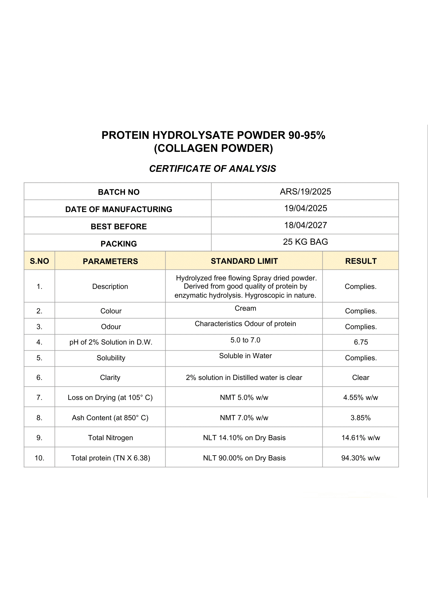 Certificate of Analysis